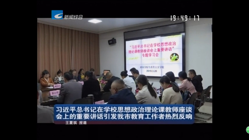 2019年3月26日,丽水广播电视总台新闻综合频道《丽水新闻》栏目报道了我校召开学习会,热议习近平总书记在学校思想政治理论课教师座谈会上的重要讲话的消息。