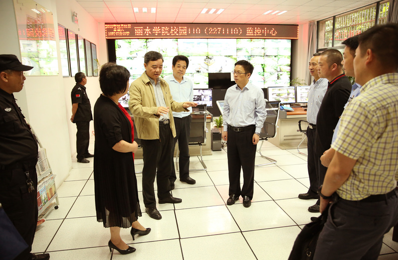 毛建国一行来到校园110视频监控中心,详细了解我校平安校园建设情况。我校健全的制度机制、完善的技防物防设施、尽职尽责的安保队伍,让毛建国等留下了深刻的印象,他对我校获评省“5A”级平安校园表示祝贺,为学校一直以来对平安丽水建设所付出的努力表示感谢,希望我校再接再厉,继续以高等级平安校园建设为目标,为师生打造最平安校园。