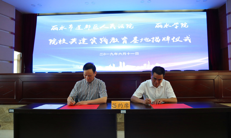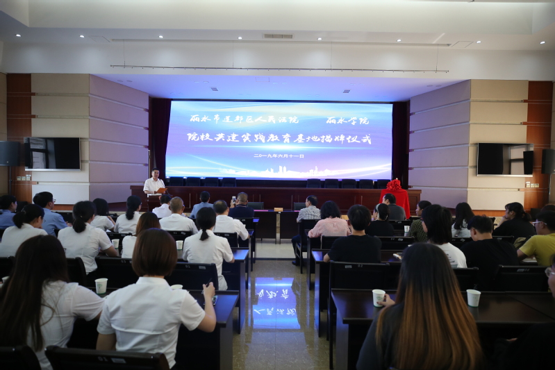 为深化大学生对全面依法治国的认识,加强思想政治教育实践教学,提高新时代大学生的法治素养,6月11日下午,我校与莲都区法院共建实践教育基地揭牌仪式在区人民法院315会议室举办。副校长徐德钦,区人民法院党组副书记、常务副院长熊剑,校党委委员、宣传部部长叶华松,区法院党组成员、政治部主任陈波等出席会议。