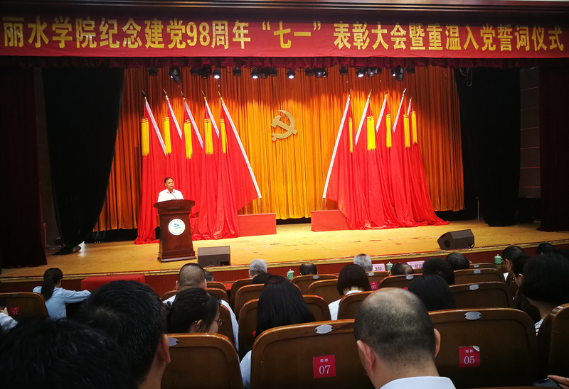 在回顾了中国共产党98年挫折中奋起、探索中前进的光辉历程后,他指出,党的十九大以来,以习近平同志为核心的党中央领导集体,用习近平新时代中国特色社会主义思想武装头脑,沿着先辈的足迹带领全国人民开拓进取,实现中华民族从富起来到强起来的伟大飞跃。他表示,我校认真学习贯彻习近平新时代中国特色社会主义思想,认真贯彻中央决策和省委市委部署,扎根丽水,不断弘扬“忠诚使命、求是挺进、植根人民”的浙西南革命精神,始终坚持围绕中心抓党建、抓好党建促发展,办学综合实力和人才培养质量得到了逐步提升,科学研究水平显著提升,国际交流合作不断拓展。他要求,全体师生党员必须坚定理想信念,恪守绝对忠诚不动摇;必须保持发展定力,深耕内涵发展不动摇;必须坚持人本治校,不断增加师生福祉不动摇;必须坚持全面从严治党,营造良好政治生态不动摇。