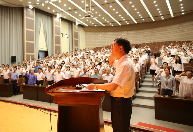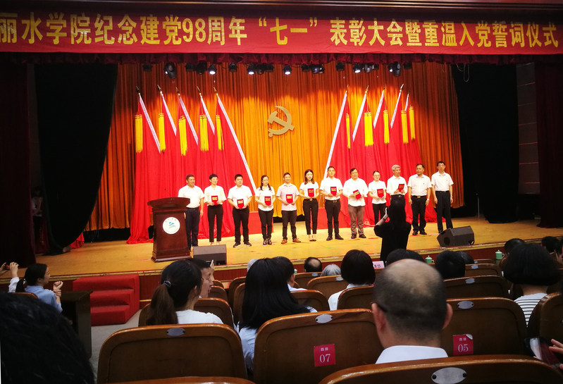 6月25日,我校在学术报告厅举办庆祝建党98周年“七一”表彰大会暨重温入党誓词仪式。校党委副书记郭献进,校党委委员、组织部长余德华,校党委委员、宣传部部长叶华松等出席此次仪式。