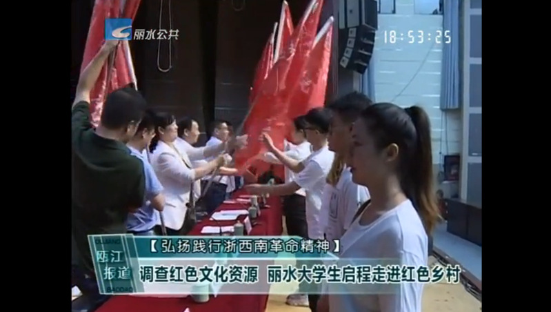 2019年6月26日,丽水广播电视台公共频道《瓯江报道》栏目报道了“走进红色乡村”主题实践活动出征仪式在我校举行的消息。