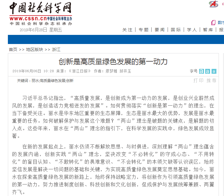 2019年6月6日,中国社会科学网转载了我校教师廖梦雅、邱开玉刊发在《浙江日报》上的理论文章。