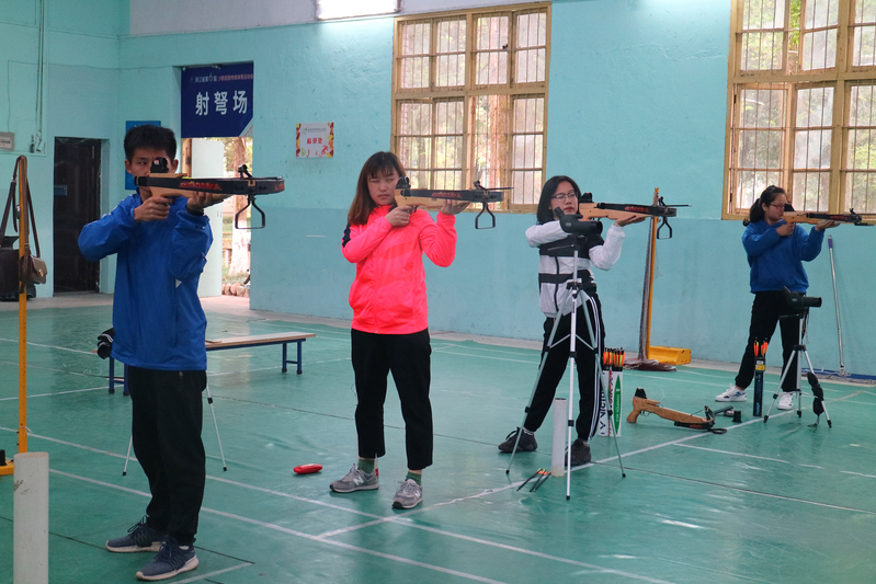 在射弩训练场地,土家族运动员何慧摸了摸右手手臂,说:“平时训练的时候,我们会在弩上挂两瓶水,一练就是几个小时。我的右手本来是没有肌肉的,现在全是肌肉。” 说起自己的教练,她话中带笑:“虽然训练很辛苦,但教练把我们的情绪都照顾得很好。无论我们遇到什么困难,他都会很耐心地帮我们解决。当我们训练成绩不理想时,他会很仔细地帮我们分析问题出在哪里,还会给我们做心理疏导,请我们去他家吃饭,来缓解我们的压力。”