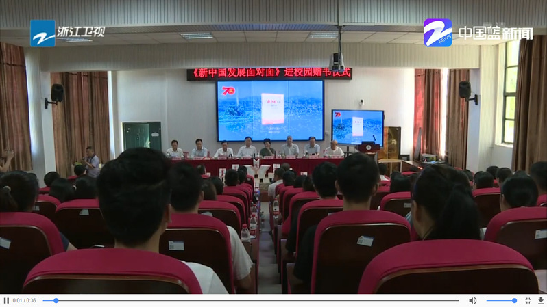 2019年7月22日,浙江卫视报道了《新中国发展面对面》在我校举行赠书仪式的消息: