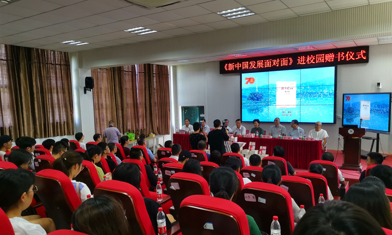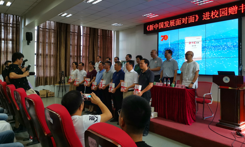 今天下午,省委宣传部联合学习出版社、省新华书店集团公司等单位在我校举办《新中国发展面对面》进校园赠书仪式。学习出版社社长董俊山,丽水市委常委、宣传部长任淑女,我校副校长徐德钦,学习出版社副社长陈玮,省委宣传部理论处处长楼胆群,省新华书店集团公司副总经理许悦等出席了仪式。