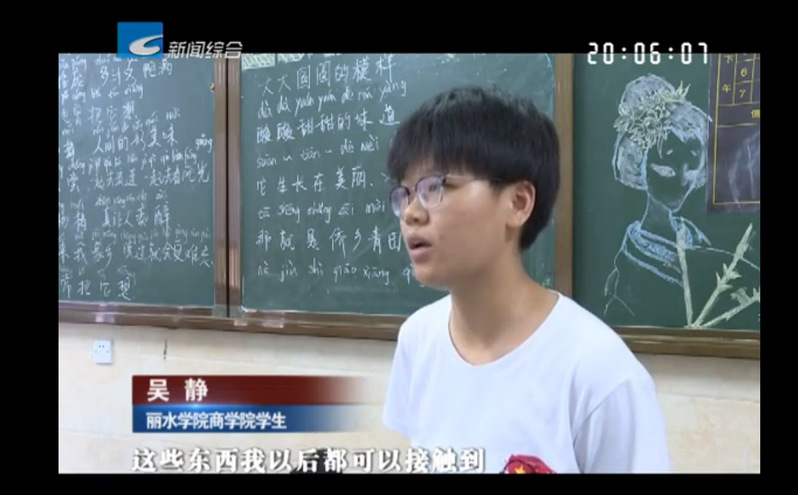 2019年8月6日,丽水广播电视台新闻综合频道《丽水新闻》栏目报道了商学院学生吴静在夏令营志愿服务中收获成长的消息。