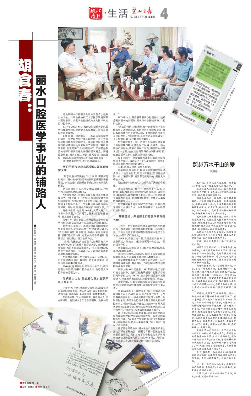 2019年8月23日出版的《丽水日报》报道了我校医学与健康学院师生在医师节访问我校口腔医学教育创始人胡官春的消息: