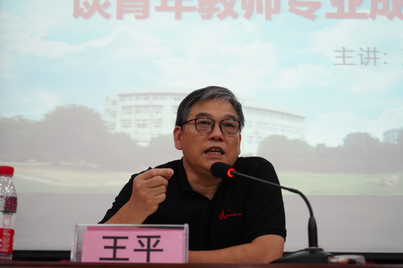 王平分别从新时代教师责任与教师作为两方面作了阐述。他提出,青年教师教育学生要从培育理想信念、厚植爱国主义情怀、加强品德修养、增长知识见识、培养奋斗精神、增强综合素质等六个方面下功夫。他精辟分析了教师职业的独特性,强调要端正职业的态度,要学会读懂学生,并正确看待学生的需要。他还提到,做好教育既要遵循规律,更要抓住教育与技术整合这一机遇,朝教育现代化方向努力。