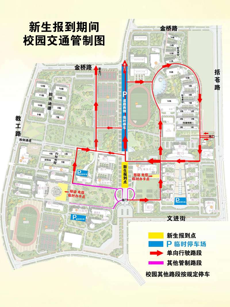 2.报到期间请教职工自觉按照交通导向行驶,禁止逆行(特别是北门),倡导大家尽量不开车来校。