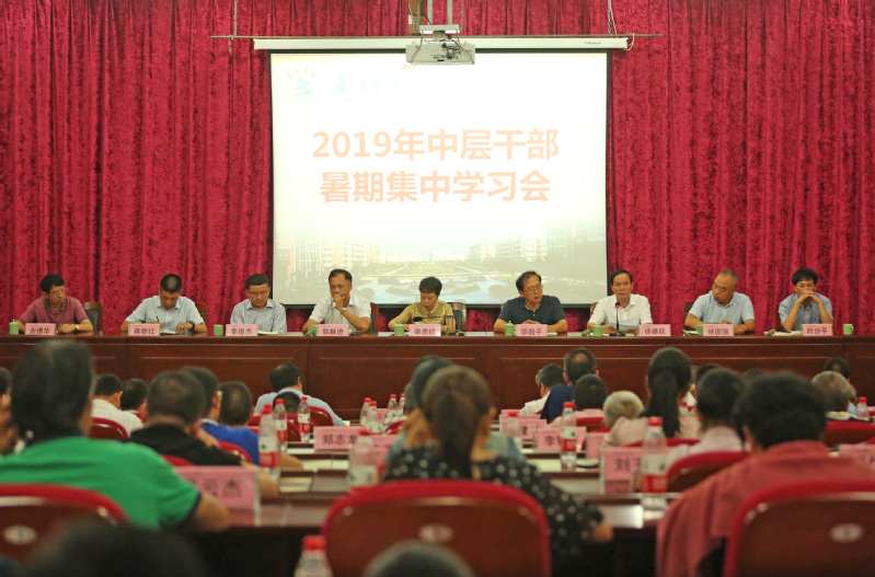 9月3日至5日,学校在思齐楼一楼报告厅召开2019年中层干部暑期集中学习会,深入学习习近平新时代中国特色社会主义思想,弘扬践行“浙西南革命精神”,不忘初心、牢记使命,深化学校改革、加强内涵建设,主动担当作为、焕发干事活力,为建设服务和助推绿色发展的高水平应用型大学而努力奋斗。