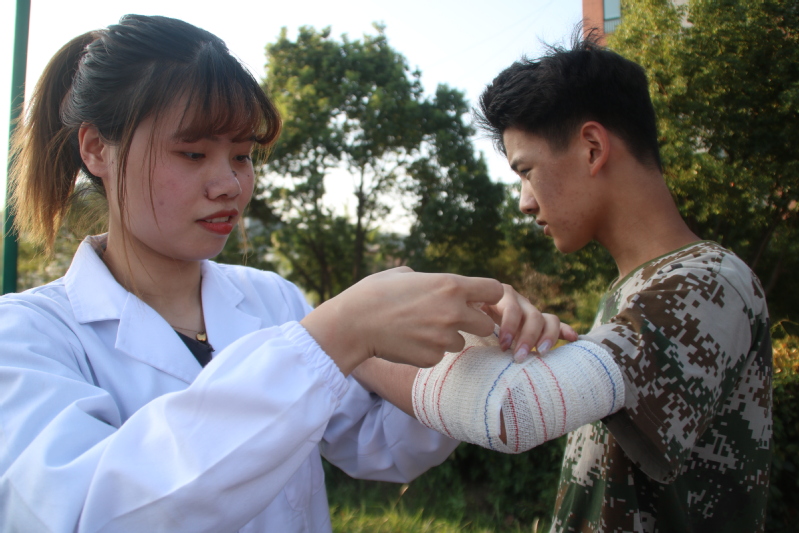 军训期间,该院志愿者走进各军训营,为学子们普及中暑急救知识和止血包扎的方法,并进行了“一对一”的示范教学,帮助新生们掌握军训期间常见的健康知识,及时应对军训过程中的突发状况。