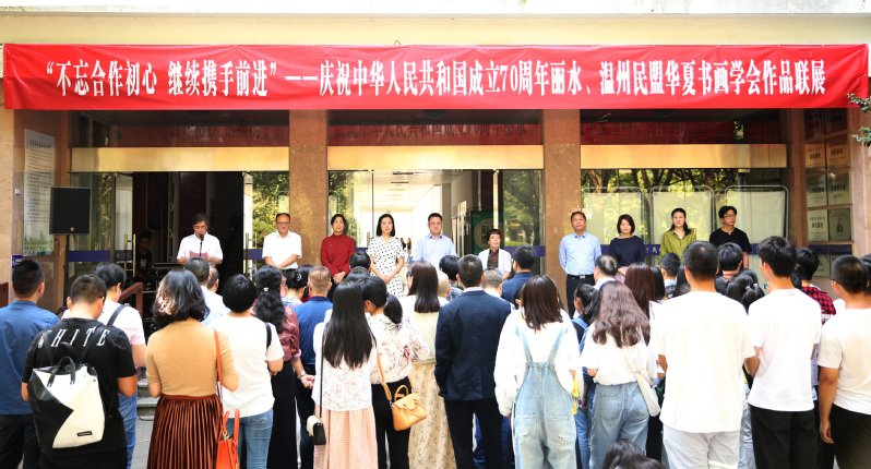 9月25日上午,为庆祝中华人民共和国成立70周年,由民盟丽水市委会、民盟温州市委会主办,民盟浙江华夏书画学会丽水分会、温州分会承办,民盟丽水学院总支、市直文化支部和丽水龙渊印社艺术馆协办的丽水、温州民盟华夏书画学会作品联展丽水站在我校若琼楼A幢一楼展览厅开幕。