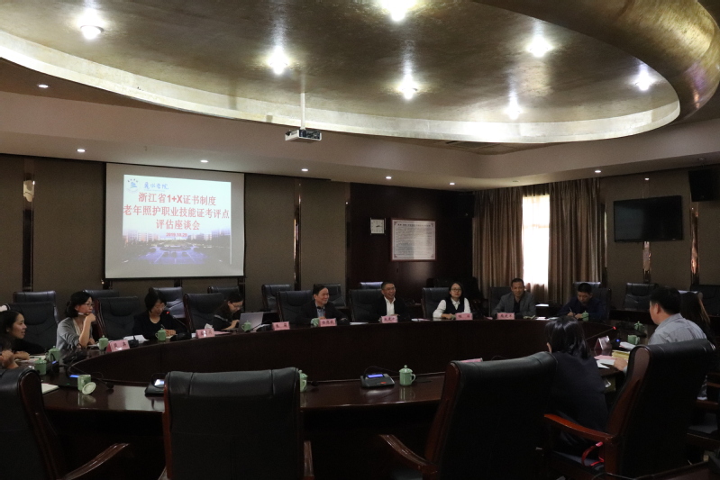10月29日下午,浙江省1+X证书制度老年照护职业技能证考评点评估座谈会在我校求是楼五楼会议室召开,由杭州胤瑞养老服务管理有限公司执行董事张仁杰等工作人员组成的考察组一行对我校“1+X”证书制度试点工作进行考评,副校长徐德钦出席。