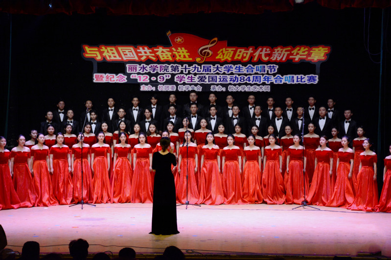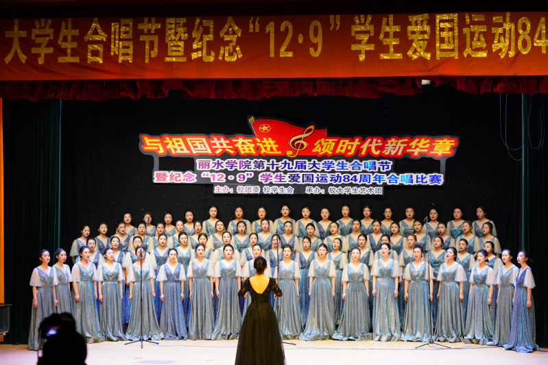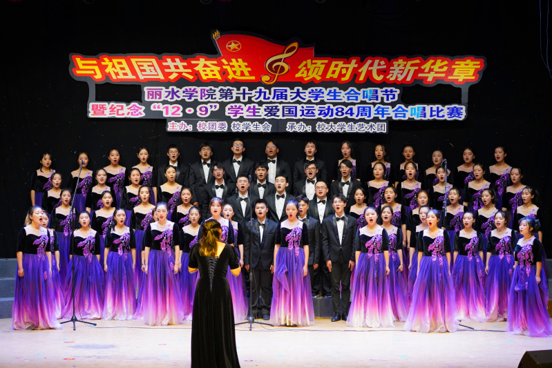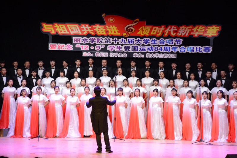 风雨七十载,丽院学子与祖国共奋进;百年薪火传,团员青年颂时代新华章。12月8日晚,学术报告厅流光溢彩,歌声嘹亮,我校第十九届大学生合唱节暨庆祝“一二·九”学生爱国运动84周年合唱比赛在此隆重举行,校党委副书记邵国平,共青团丽水市委副书记孔金峰等出席活动并为获奖团队颁奖。