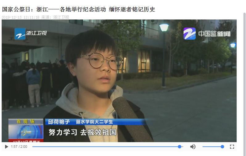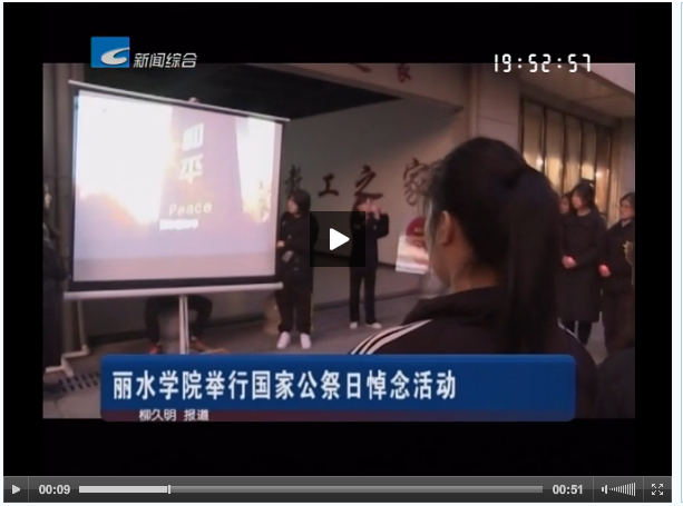 2019年12月13日,丽水电视台新闻综合频道报道了我校举行国家公祭日悼念活动。