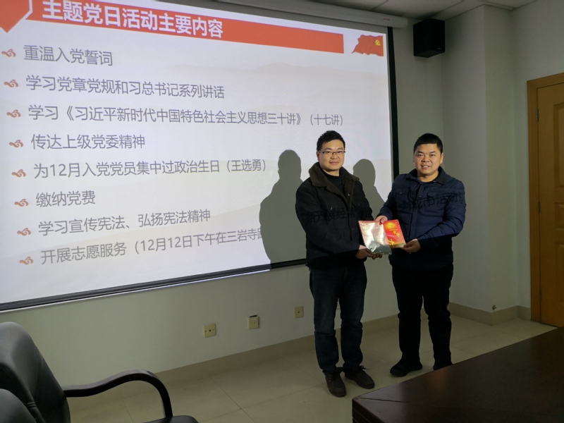此次活动中,党员们还一起学习了习近平总书记强调的“七个有之”“五个必须”、卢永根同志的先进事迹,并为王选勇同志庆祝了政治生日。