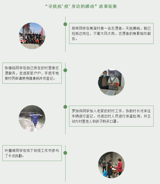 除了捐款捐物,不少师生党员都积极报名参与了当地志愿者服务,在宣传告知、卡口执勤、消毒防疫、统计数据等方面发挥作用。