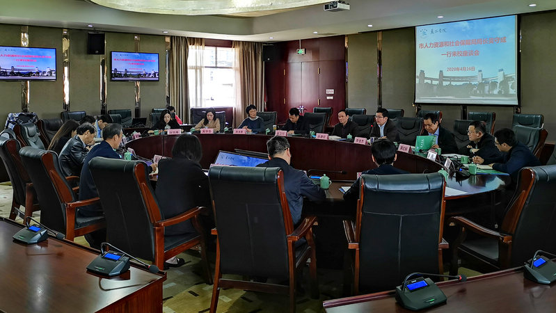 4月16日上午,市人力资源和社会保障局党组书记、局长吴守成一行来校就人事管理、人才政策、工资福利、毕业就业、社会培训与地方服务等工作进行调研座谈,市人力社保局副局长章旭、就业服务中心主任金丽芬和我校副校长李俊杰出席,副校长徐德钦主持。