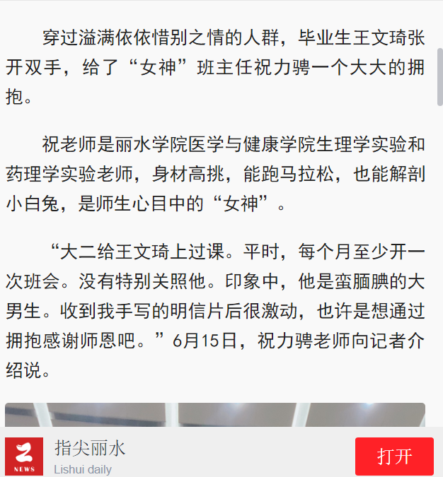 6月18日,指尖丽水报道了医学与健康学院2020届毕业班班主任祝力骋老师给学生送手写明信片的事迹。