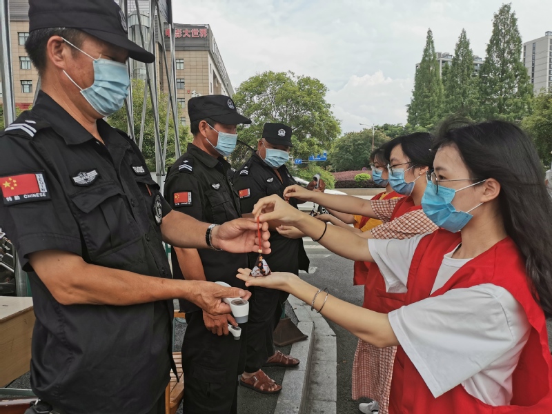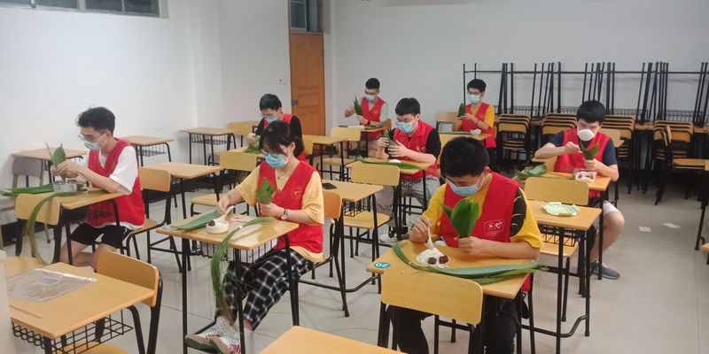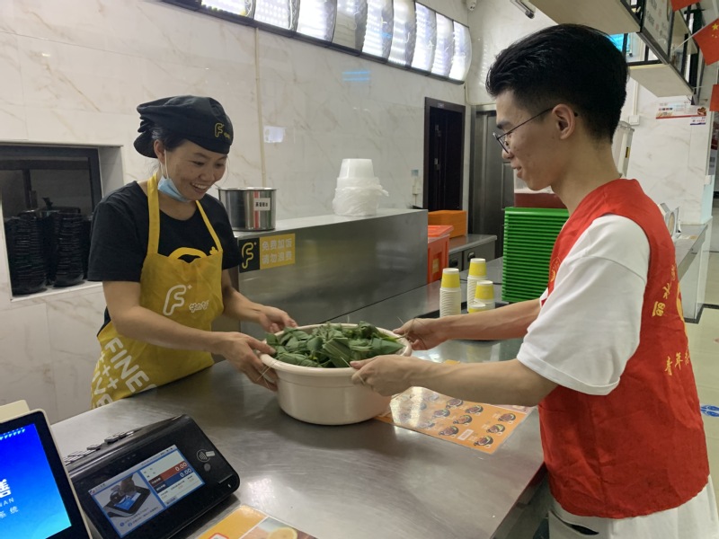 端午佳节,工学院和职业技术学院的同学们巧手制作了粽子、香囊,赠予食堂阿姨和校园安保人员,并送上了节日的祝福。