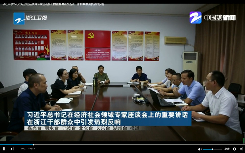 2020年8月25日,浙江卫视浙江新闻联播栏目报道了《习近平总书记在经济社会领域专家座谈会上的重要讲话在浙江干部群众中引发热烈反响》,采用了我校马克思主义学院召开座谈会的画面。