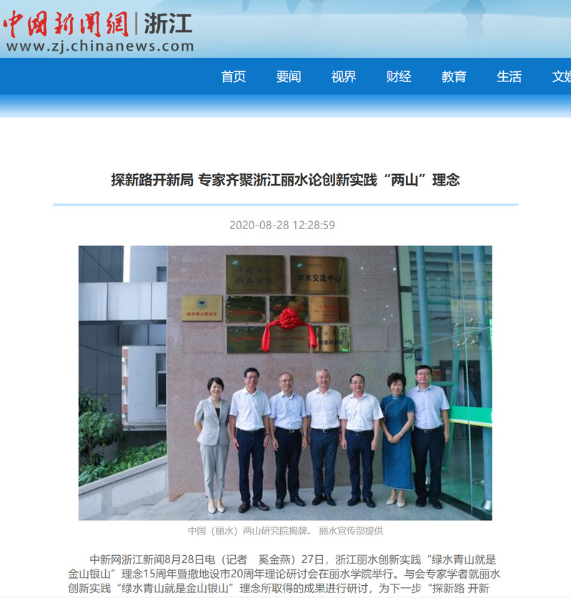 2020年8月28日,中新网浙江频道报道了丽水创新实践“绿水青山就是金山银山”理念15周年暨撤地设市20周年理论研讨会在我校举行的消息。