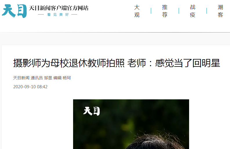 2020年9月10日,天目新闻发布了我校校友甘国军教师节前夕为母校退休教师拍照的消息。