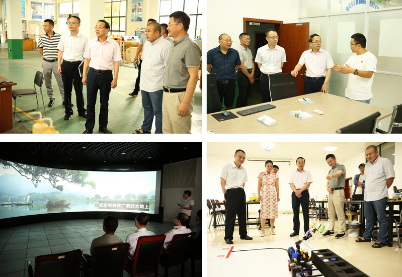 在工学院,王利琳一行先后参观了浙江省特色文创产品数字化设计与智能制造重点实验室、浙西南BIM中心、校虚拟现实与人机交互研究中心,走访了大学生校内创新实践基地,他对工学院所拥有的先进平台和大学生实践场所表示赞赏。