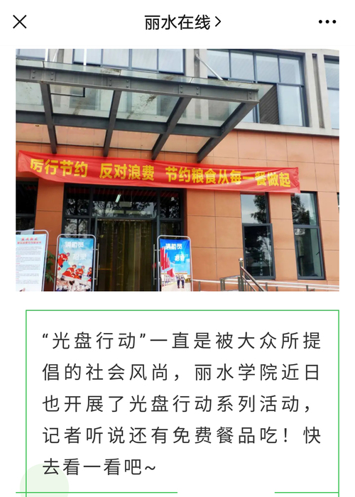 2020年9月28日,丽水市广电总台微信公众号丽水在线发布了我校开展光盘抽奖活动的消息。