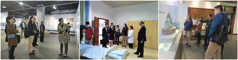 在周一红的陪同下,一行人参观考察了民族教育办学成果馆、护理实验教学楼、中瑞合作项目教学区和中国青瓷艺术馆。