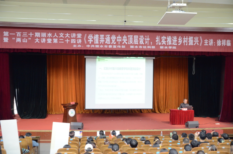 10月26日下午,“两山”大讲堂第二十四讲在我校学术报告厅举行。中共中央党校教授徐祥临受邀作了题为“学懂弄通中央顶层设计与扎实推进乡村振兴”的主题讲座。