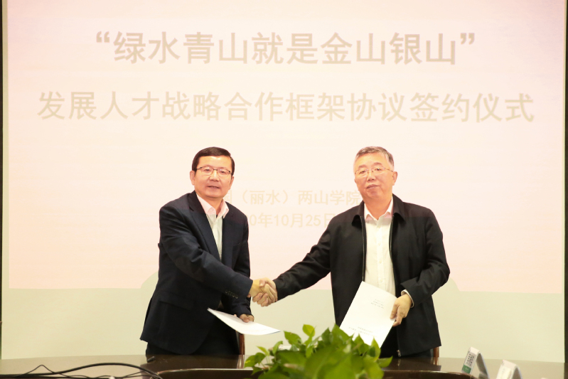 活动中,中国人才交流协会与我校两山学院签订了《“绿水青山就是金山银山”发展人才战略合作框架协议》。按照协议,双方将围绕“两山”理念研究、学术交流、项目培育、人才培训、人才引进、培训基地建设等方面开展深入合作。