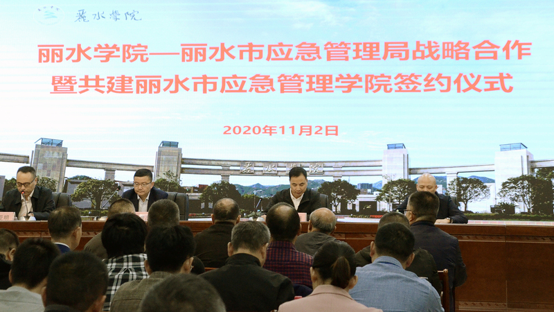 11月2日下午,我校与丽水市应急管理局战略合作暨共建丽水市应急管理学院签约仪式在图书馆九楼报告厅举行,校长李俊杰、市应急管理局局长王世强出席,副校长汪亚明主持。