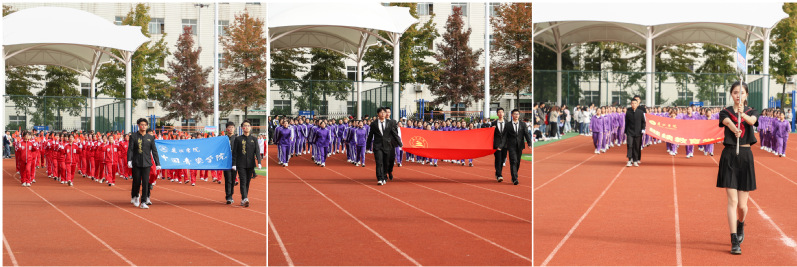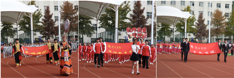 开幕式上,国旗队、鼓乐队、彩旗队、裁判员代表队和各二级学院代表队依次进入运动场;运动员代表和裁判员代表分别宣誓。广播操比赛和啦啦操、武术串烧、跆拳道、舞龙等团体节目表演精彩纷呈,引发现场阵阵掌声。