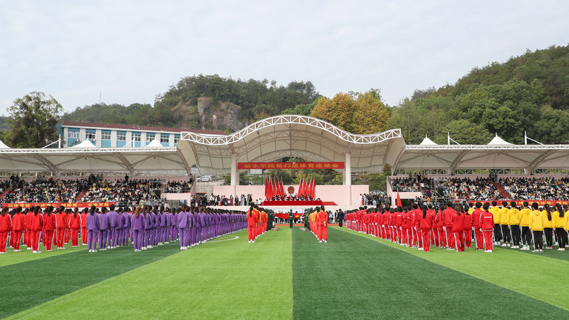 11月4日上午,我校第43届运动会在西区田径场隆重开幕。校领导党政班子成员王利琳、李俊杰、郭献进、蒋黎红、鲁剑伟、汪亚明、周一红、彭兵、余德华、王赳、廖峰出席并在主席台就坐,校党委副书记叶华松主持。