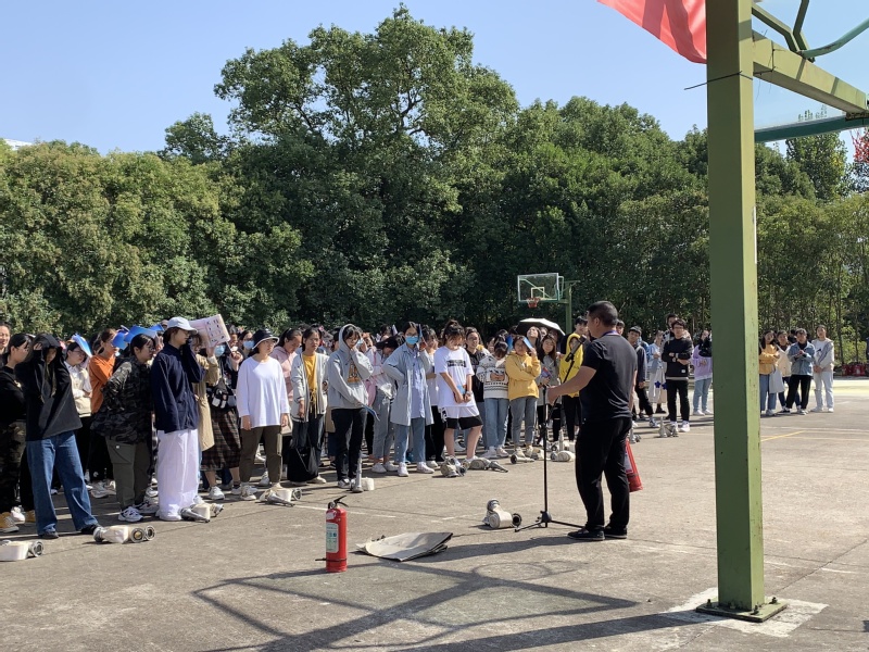 日前,学校在东区篮球场开展新生、新进教职工及管理人员消防培训。
