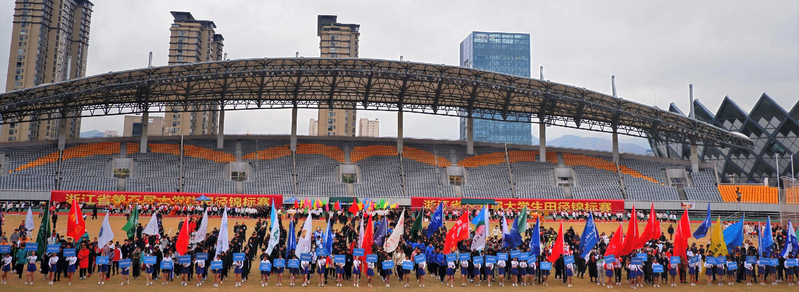 11月23日上午,浙江省第五届大学生田径锦标赛在丽水市体育中心开幕。