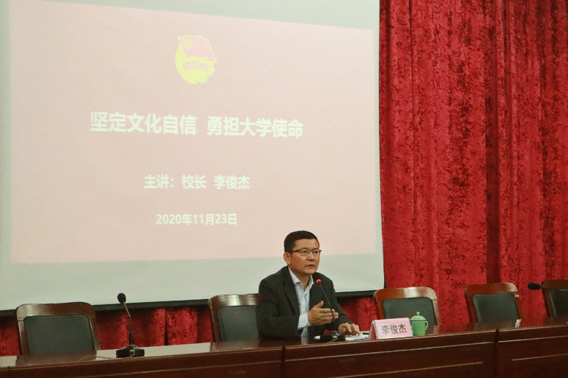11月23日下午,我校第十八期共青团干部读书会在思齐楼一楼报告厅举行,校长李俊杰出席并围绕“坚定文化自信,勇担大学使命”为广大团干授课。