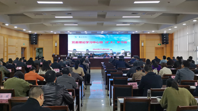 11月25日上午,党委理论学习中心组(扩大)学习会在图书馆9楼报告厅召开,省委宣讲团成员、浙江省社会科学院院长何显明应邀作题为《开启全面建设社会主义现代化国家新征程——深入学习十九届五中全会精神》的宣讲,校党委理论学习中心组成员、全体中层干部、马克思主义学院部分教师参会。会议由校党委副书记叶华松主持。
