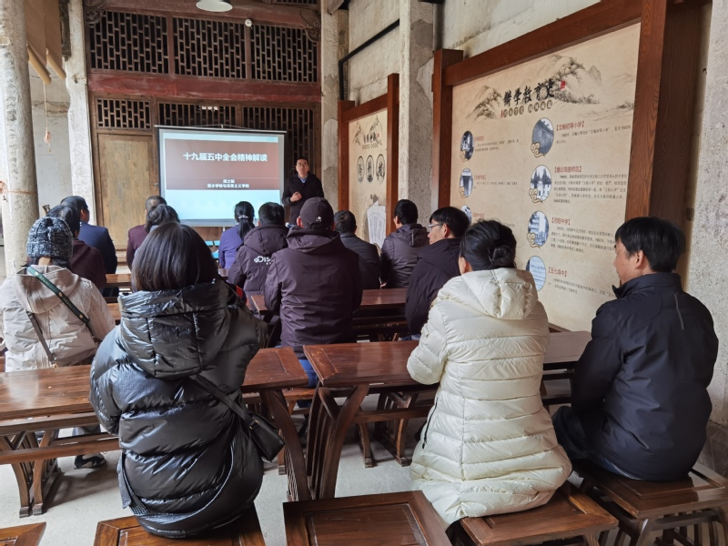 在河阳村文化中心,周之新老师围绕党的十九届五中全会精神为大家做了专题解读。周老师从建议稿起草过程、“十三五”时期发展成就、 “十四五”时期经济社会发展和改革开放的重点任务、2035年基本实现社会主义现代化远景目标、建议稿的几个亮点等方面谈了自己的学习体会。通过学习,党员教师对党的十九届五中全会精神有了更深刻的体会,充分认识到实现“十四五”规划和2035年远景目标,意义重大,任务艰巨,前景光明。