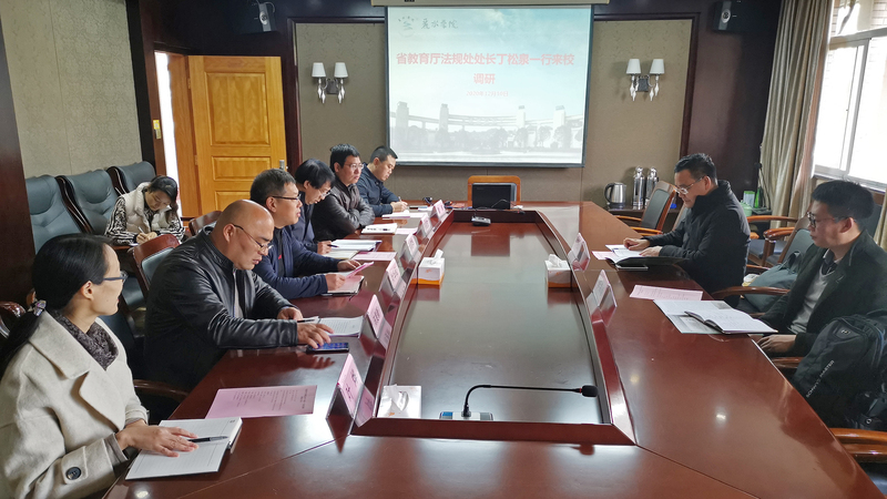 12月10日,浙江省教育厅法规处处长丁松泉一行来校调研“清廉学校”建设和巡察工作情况。校党委副书记叶华松,校党委委员、组织部部长余德华参加了调研座谈会。