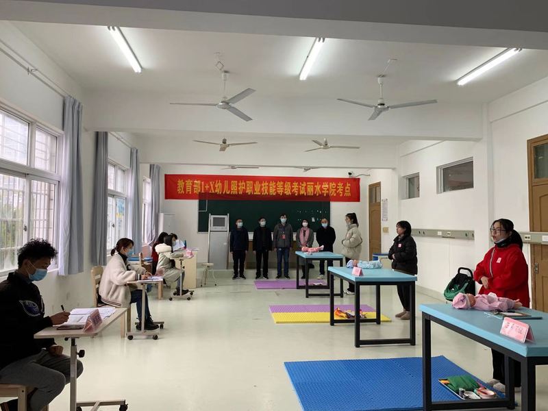 12月27日,国家“1+X”幼儿照护职业技能等级证书浙江考区丽水考点在我校顺利举行,我校共选拔100名同学参加本次考试。