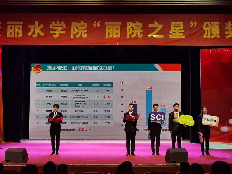 颁奖典礼分为四个篇章:“先锋红”——不忘初心、先锋力行,“创新蓝”——永攀高峰、守正创新,“生态绿”——保卫生态、践行“两山”,“活力橙”——激昂青春、活力校园,分别表彰在道德风尚、学业技能、科研竞赛、创新创业、社会实践、文体展演等方面取得优异成绩的学生个人和团队,部分获奖个人、团队代表进行了现场展示。