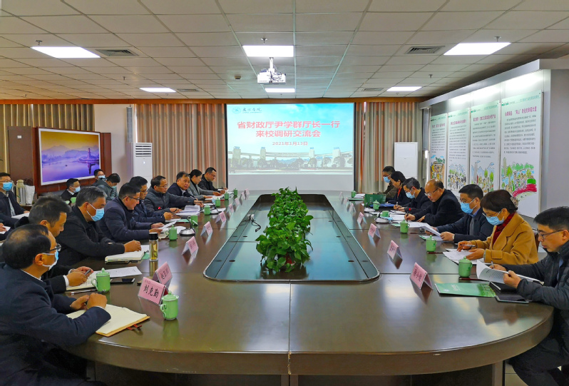 王利琳对省财政厅、市委市政府对学校一直以来的关心支持表示感谢。他表示,学校正聚焦内涵建设、聚力内部治理,为建成服务绿色发展的高水平应用型大学而努力奋斗,今后五年要全面提升办学层次和水平,建立硕士研究生教育体系和现代大学制度体系,希望能得到更多支持。李俊杰汇报了我校基本情况、学校财务基本情况以及学校发展存在的困难等方面。副校长周一红就具体工作做了汇报。