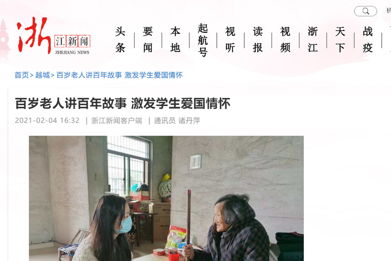 2021年2月4日,浙江新闻客户端报道了我校工学院“百岁老人讲百年故事”寒假社会实践活动的消息。