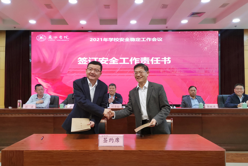 近日,我校2021年安全稳定工作会议在图书馆九楼报告厅召开,校党政班子和全体中层干部参加。校长李俊杰代表学校与部门、学院代表签订安全工作责任书并讲话,校党委副书记叶华松主持。