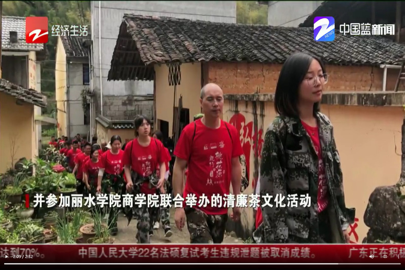2021年4月10日,浙江电视台经济生活频道报道了龙泉市岩樟乡组织的全民毅行活动,我校商学院参与组织了清廉茶活动。