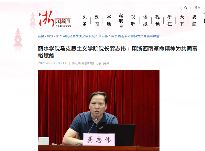 6月3日,浙江新闻刊发了我校马克思主义学院院长龚志伟署名文章《用浙西南革命精神为共同富裕赋能》。