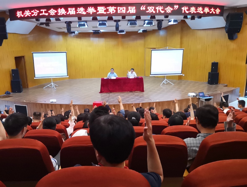6月4月下午,机关分工会在音乐厅举行换届选举暨第四届“双代会”代表选举大会,全体机关教职工参加了本次会议。